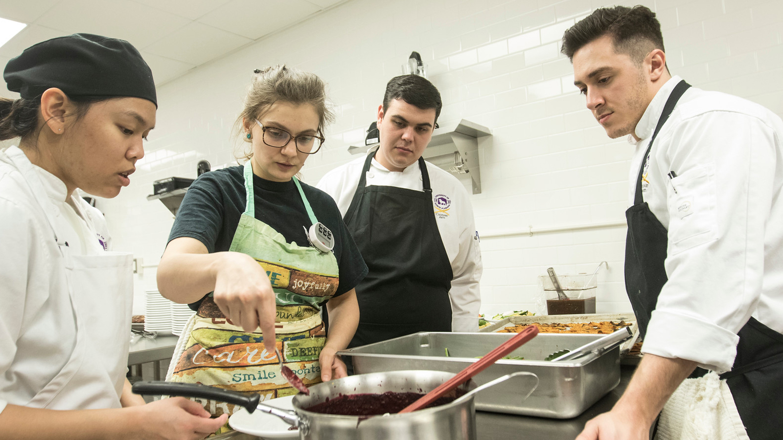UNA's Jeff Eubanks Culinary Arts Management program offers Alabama’s first and only four-year Bachelor of Science in Culinary Arts degree. Our faculty and staff offer 85 years’ combined experience and close connections to industry leaders. Students receive hands-on cooking and management skills, from basic principles of fresh food preparation to financial cost control and entrepreneurship. Students participate in high-level projects, organic food procurement, and food service management, with further opportunities in competitions, workshops with guest master chefs, and internships. Program graduates are fully qualified for and have excellent prospects in a wide range of hospitality positions.
