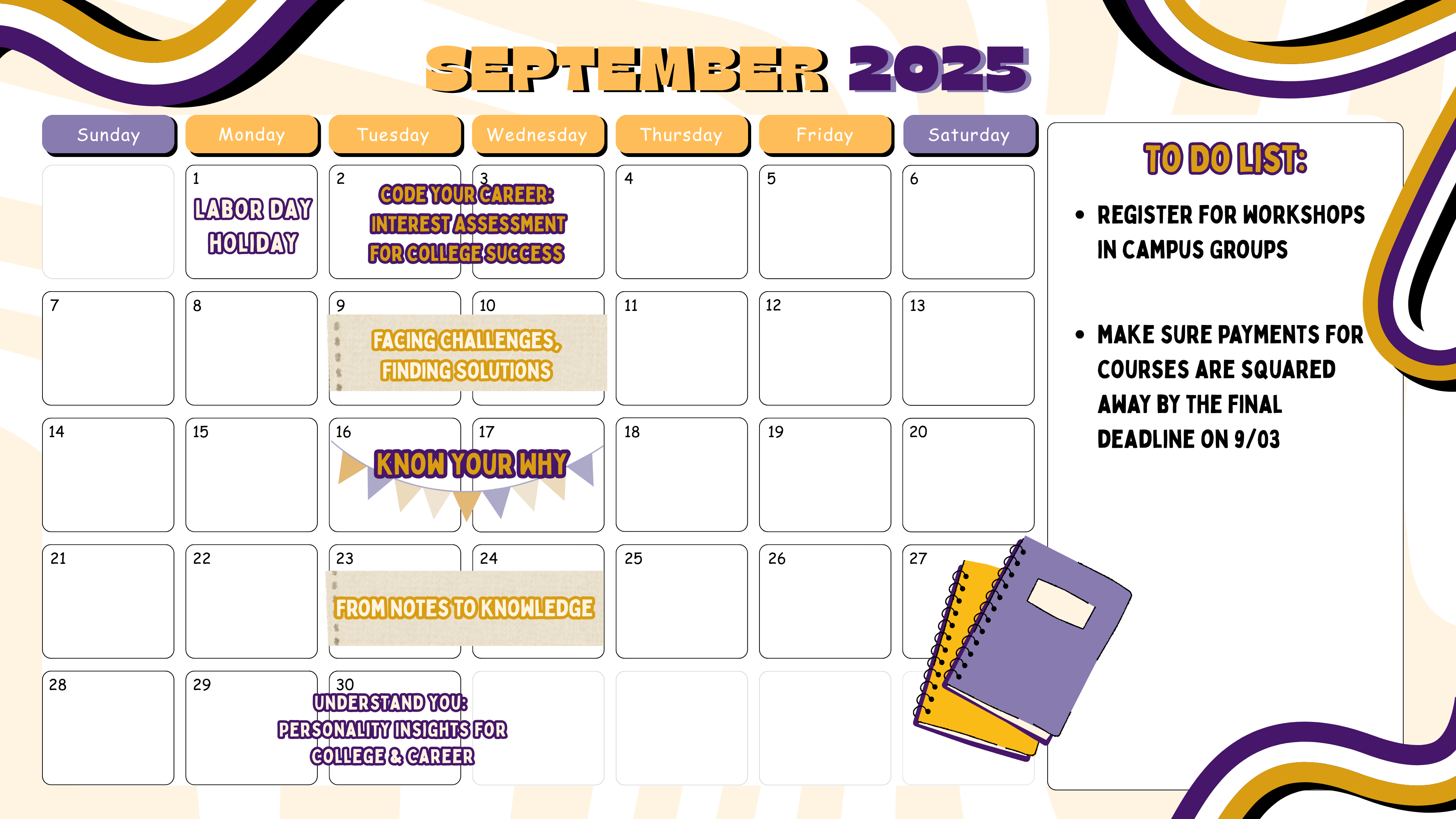 Starting college is exciting—but it can also feel overwhelming. How to College is a two-day event designed to help you navigate your academic journey with confidence! Join us for interactive sessions covering everything from time management and finding your community to academic success strategies and making the most of your degree.